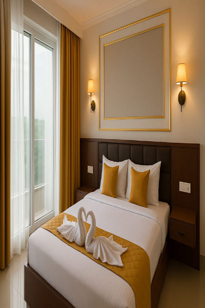 Arjun Shetty“I stayed here for a week while visiting Yenepoya University, and it was an excellent experience. The room had everything I needed, from good Wi-Fi to comfortable bedding. The location is ideal for students, parents, and anyone visiting the campus. The hotel felt very safe and homely, and the cleanliness was impressive. I will definitely choose Crown Regency again.”