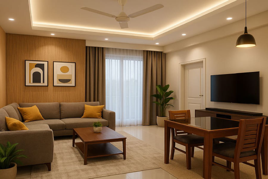 /nightDiscover an elevated standard of living with our 1 BHK Super Luxury residence, where every detail is curated to deliver unmatched sophistication and comfort. This exclusive space combines cutting-edge design with exquisite craftsmanship, featuring a grand living area adorned with high-end furnishings, rich textures, and elegant lighting that creates a warm yet opulent ambiance. The spacious bedroom offers a sanctuary of serenity with plush finishes, premium wardrobes, and a calming aesthetic that ensures ultimate relaxation. A state-of-the-art modular kitchen, fitted with top-tier fixtures and contemporary appliances, brings convenience and style together seamlessly. The luxurious bathroom reflects spa-inspired design, complete with superior fittings and a refined atmosphere that enhances your daily routine. From the flawless layout to the fine attention to detail, this 1 BHK Super Luxury home sets a new benchmark for upscale living—perfect for individuals who seek exclusivity, comfort, and a lifestyle defined by refined luxury.